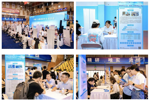 畢業(yè)生代表回顧成長歷程,感謝培養(yǎng)平臺(tái)與導(dǎo)師指導(dǎo),誓言投身國防事業(yè)。導(dǎo)師代表肯定學(xué)生科研淬煉的“嚴(yán)謹(jǐn)”與“擔(dān)當(dāng)”,寄語傳承人民兵工精神,在強(qiáng)軍報(bào)國中實(shí)現(xiàn)價(jià)值。校友代表以科研經(jīng)歷詮釋兵工人使命,勉勵(lì)學(xué)弟學(xué)妹以裝備成果接力書寫強(qiáng)軍報(bào)國答卷。全體師生共同唱響《強(qiáng)軍有我》,鏗鏘有力的歌聲回蕩在體育館內(nèi),既飽含著對(duì)青春理想的告白,更傳遞出投身國防事業(yè)的堅(jiān)定信念,為這場(chǎng)畢業(yè)盛典增添了厚重的使命底色。 典禮的莊重氛圍未散,兩場(chǎng)精準(zhǔn)對(duì)接國防需求的雙選會(huì)已在相鄰場(chǎng)館同步開啟。60家集團(tuán)公司下屬單位的招聘人員與2025屆畢業(yè)生、在讀研究生及工程碩博士們圍坐洽談,圍繞崗位需求與項(xiàng)目方向,以簡歷和科研成果為媒展開深度對(duì)接。這場(chǎng)覆蓋多層次人才的就業(yè)服務(wù),精準(zhǔn)銜接科研人才儲(chǔ)備與國防需求,為兵器事業(yè)高質(zhì)量發(fā)展注入活力。  兵器工業(yè)集團(tuán)研究生雙選會(huì)現(xiàn)場(chǎng)
