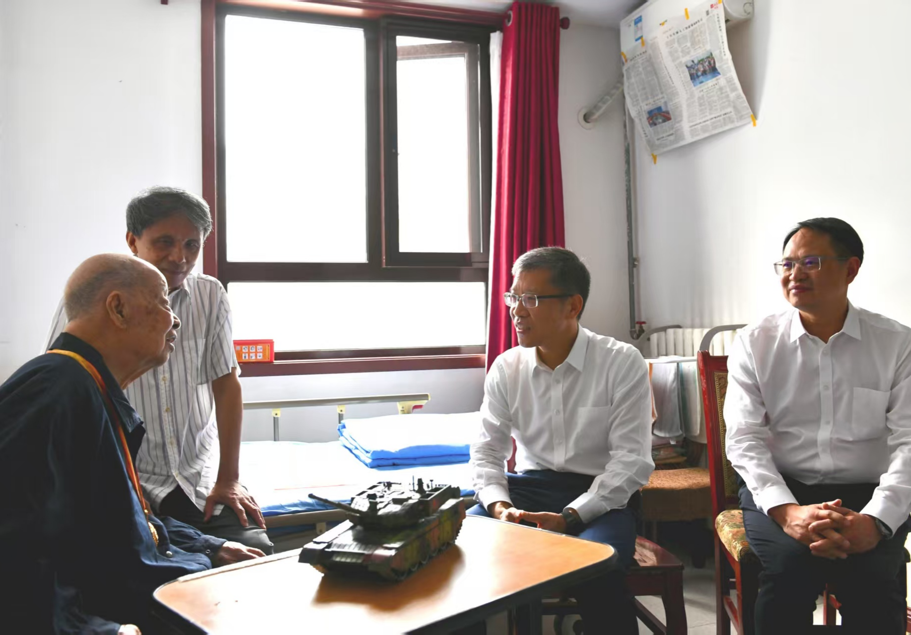8月28日,在紀(jì)念中國人民抗日戰(zhàn)爭(zhēng)暨世界反法西斯戰(zhàn)爭(zhēng)勝利80周年之際,中國兵器工業(yè)集團(tuán)有限公司黨組書記、董事長周治平看望慰問抗戰(zhàn)老戰(zhàn)士苑紀(jì)同志,代表集團(tuán)公司黨組向全系統(tǒng)抗戰(zhàn)老戰(zhàn)士、老同志致以崇高敬意和誠摯問候。集團(tuán)公司黨組成員、副總經(jīng)理葉文華一同參加。 在苑紀(jì)同志住處,周治平關(guān)切詢問苑老的身體狀況、生活照料和醫(yī)療護(hù)理等情況,鄭重地為他佩戴“中國人民抗日戰(zhàn)爭(zhēng)勝利80周年”紀(jì)念章,衷心感謝他為黨和國家事業(yè)以及人民兵工發(fā)展作出的重要貢獻(xiàn)。今年已年滿100周歲的苑紀(jì)老同志,佩戴上彰顯偉大勝利、體現(xiàn)崇高榮譽(yù)的紀(jì)念章,感到十分光榮。他動(dòng)情地說,作為一名老兵,自己一輩子相信黨、跟著黨,烽火歲月令人難忘,幸福生活來之不易,衷心感謝習(xí)近平總書記的牽掛和黨中央的關(guān)懷,感謝兵器工業(yè)集團(tuán)黨組的關(guān)心和照顧,祝福祖國繁榮昌盛,祝愿兵器事業(yè)蒸蒸日上。 周治平表示,以中共中央、國務(wù)院、中央軍委名義發(fā)放紀(jì)念章,充分體現(xiàn)了以習(xí)近平同志為核心的黨中央對(duì)抗戰(zhàn)老戰(zhàn)士、老同志的高度重視和深切關(guān)懷。我們要永遠(yuǎn)銘記抗戰(zhàn)老戰(zhàn)士、老同志的英勇事跡和歷史功績,大力弘揚(yáng)“把一切獻(xiàn)給黨”的人民兵工精神,從偉大抗戰(zhàn)精神中汲取奮進(jìn)力量,推動(dòng)集團(tuán)公司全系統(tǒng)形成崇尚英雄、學(xué)習(xí)英雄、爭(zhēng)做英雄的良好風(fēng)尚,奮力譜寫新時(shí)代新征程兵器工業(yè)高質(zhì)量發(fā)展新篇章。集團(tuán)公司各級(jí)黨組織要深入學(xué)習(xí)貫徹習(xí)近平總書記關(guān)于老干部工作的重要論述和重要指示批示精神,帶著敬重、帶著責(zé)任,用心用情、精準(zhǔn)精細(xì)做好各項(xiàng)服務(wù)保障工作,讓兵器老同志時(shí)刻感受到黨的關(guān)懷溫暖,安享幸福晚年。 苑紀(jì),生于1925年2月,先后參加過抗日戰(zhàn)爭(zhēng)和解放戰(zhàn)爭(zhēng),曾任第五機(jī)械工業(yè)部電子光學(xué)儀器生產(chǎn)管理局局長、兵器工業(yè)部五局局長,榮獲“兵器工業(yè)特殊榮譽(yù)獎(jiǎng)”。2015年9月3日,作為抗戰(zhàn)老戰(zhàn)士代表參加紀(jì)念抗日戰(zhàn)爭(zhēng)勝利70周年大會(huì)及閱兵儀式。(兵器離退休干部局) |